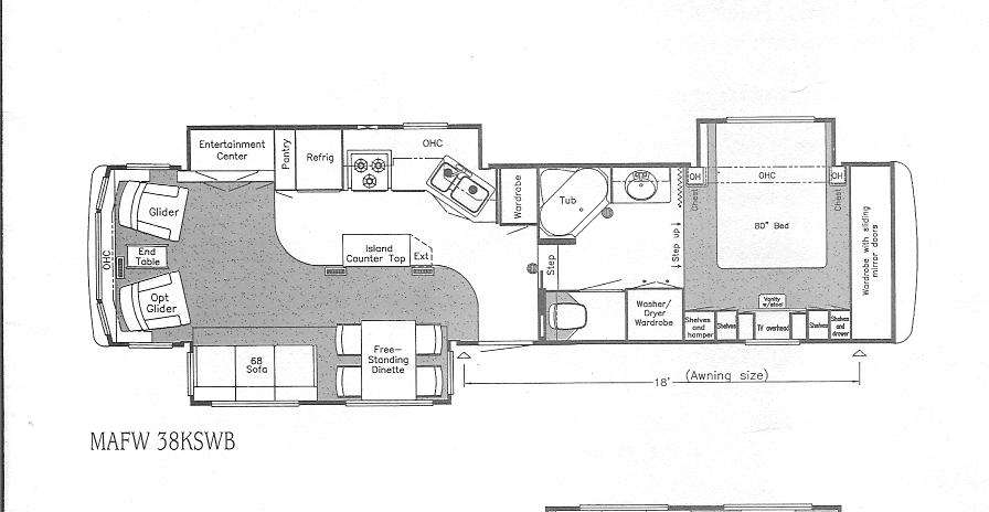 2000 model MAFW 38KSWB Newmar Mountain Aire for sale. Will sell for $20000. This camper is definitely setup for fulltiming . No pets or smoking ever. I added a couch/hide-a-bed not shown in the photos. It is light brown or tan and looks like ultra suede. This unit has 2 15000 BTU heatpumps, 2 furnaces, thermo pane windows with day-night shades and solar screen and awnings all around,washer dryer stack, Storage, Storage, Storage, And did I mention Storage?? 4000 lbs. worth.